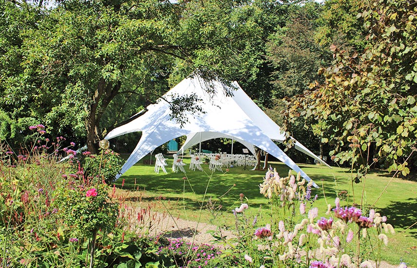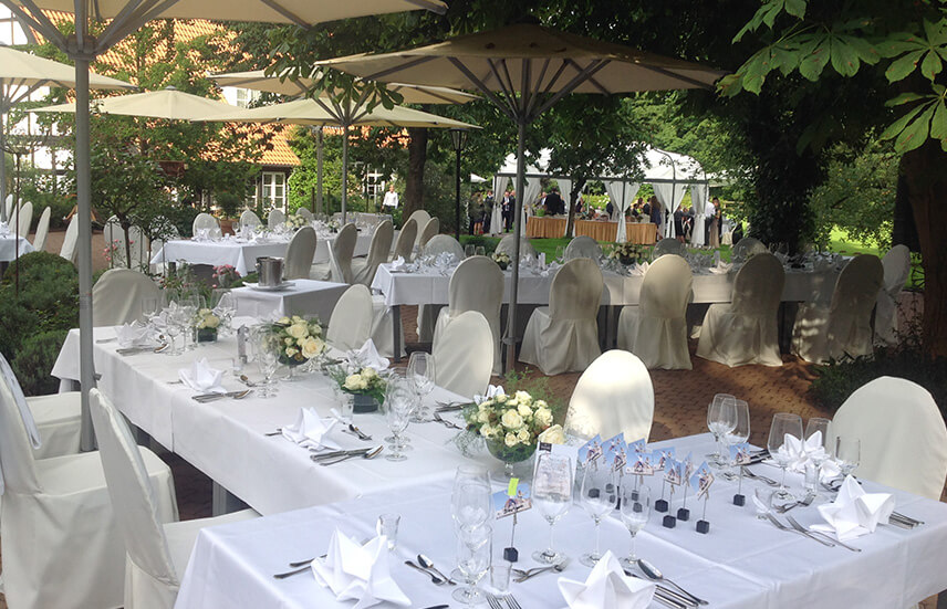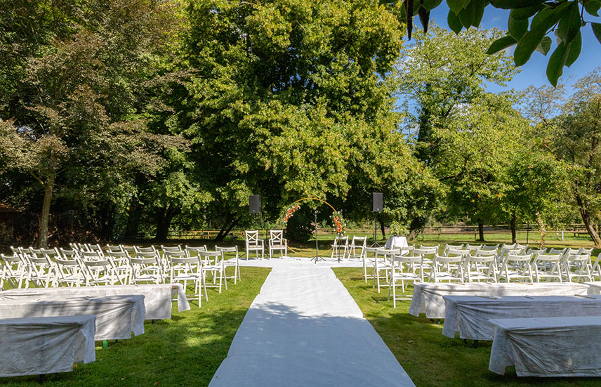 Die Natur bildet den schönsten Rahmen für besondere Anlässe. Unser weitläufiger Außenbereich fügt sich harmonisch in den Garten des Forsthauses ein und eröffnet vielfältige Möglichkeiten für Feiern unter freiem Himmel. Ob auf der großzügigen Sommerterrasse oder im Gartenpavillon – beide Flächen laden dazu ein, besondere Momente in entspannter Atmosphäre und umgeben von Grün zu genießen.