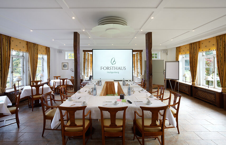 Bei parlamentarischer Bestuhlung finden hier bis zu 30 Personen Platz. Eine Bestuhlung in U-Form eignet sich für bis zu 15 Personen, während die Blockbestuhlung Raum für bis zu 20 Personen bietet. Der direkte Zugang zum Garten lädt in den Pausen zum Durchatmen und Erholen ein und ergänzt den Raum auf natürliche Weise.