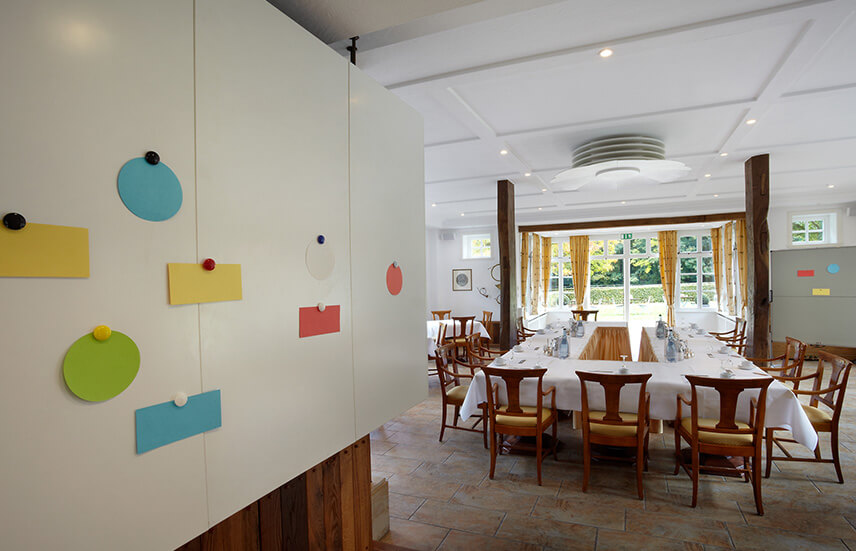 Neue Lösungen findet man dort, wo ihnen Raum geboten wird. Unser Tagungsraum Haus Ringwall erwartet unsere Gäste mit viel Freiraum und einer lichtdurchfluteten, motivierenden Atmosphäre und der Möglichkeit direkt den Garten zu nutzen.