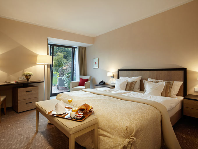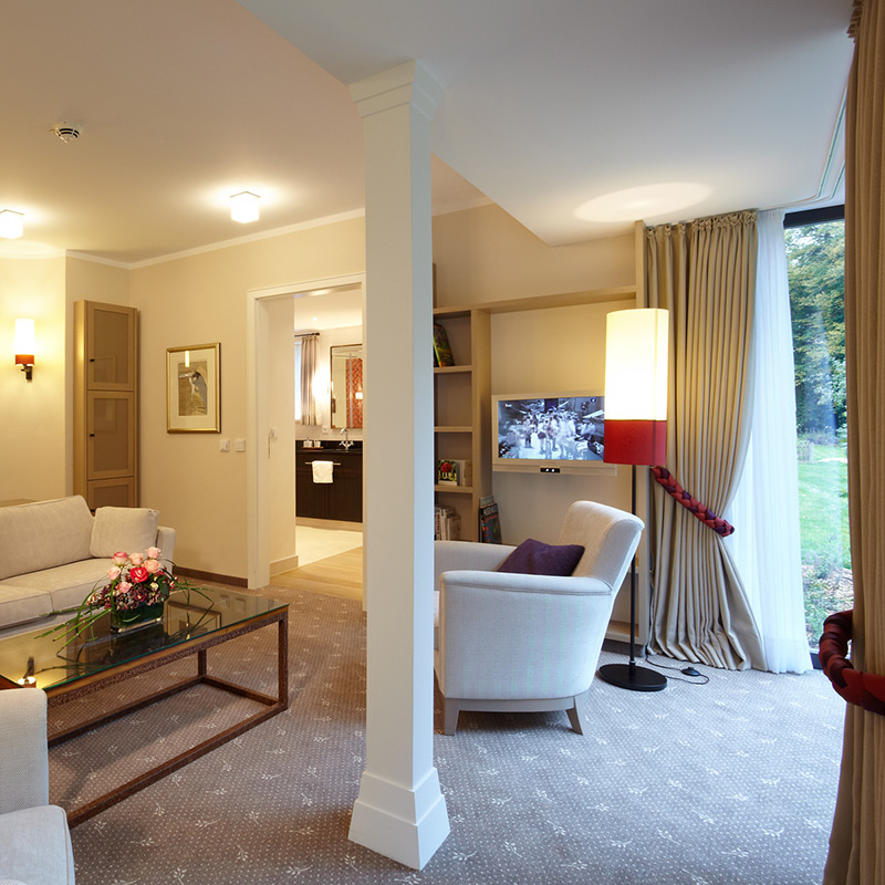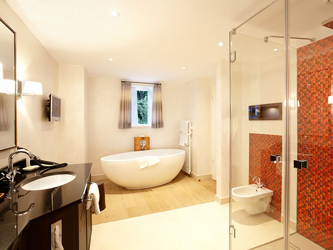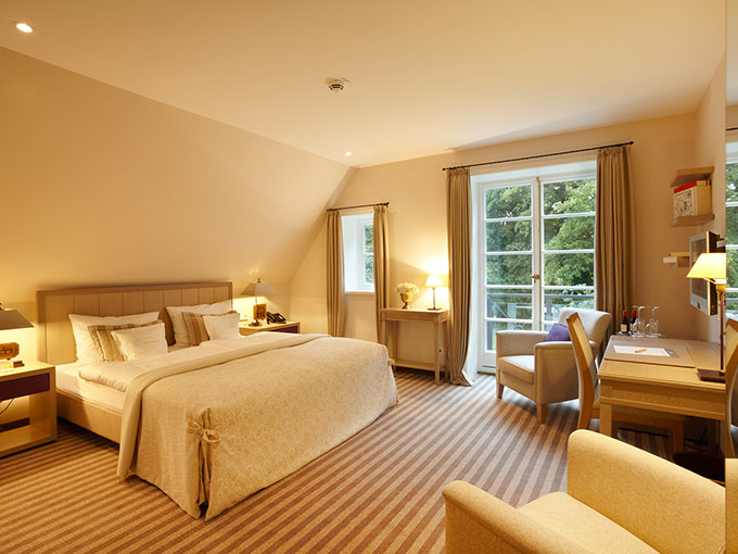 Die Einrichtung der Zimmer wurde von einem regionalen Handwerksbetrieb maßgefertigt und verbindet zeitlose Eleganz mit hohem Wohnkomfort. Die Bäder sind individuell gestaltet, dabei durchweg hochwertig ausgestattet und gelten für viele Gäste als Inspirationsquelle für modernes Bad-Design im privaten Bereich.