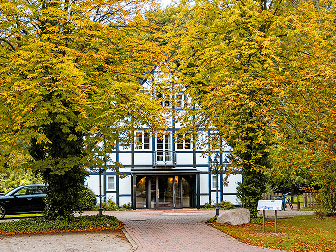 Gegenüber dem historischen Haupthaus, eingebettet in die Obstwiese, entstand mit dem Rosenquartier ein modernes Gästehaus, das sich architektonisch bewusst am Stil der übrigen Gebäude auf dem Heiligenberg orientiert. Das schwarz-weiße Fachwerk verleiht dem Haus seinen unverwechselbaren Charakter, während großzügige Gauben die Zimmer von drei Seiten mit Tageslicht durchfluten.