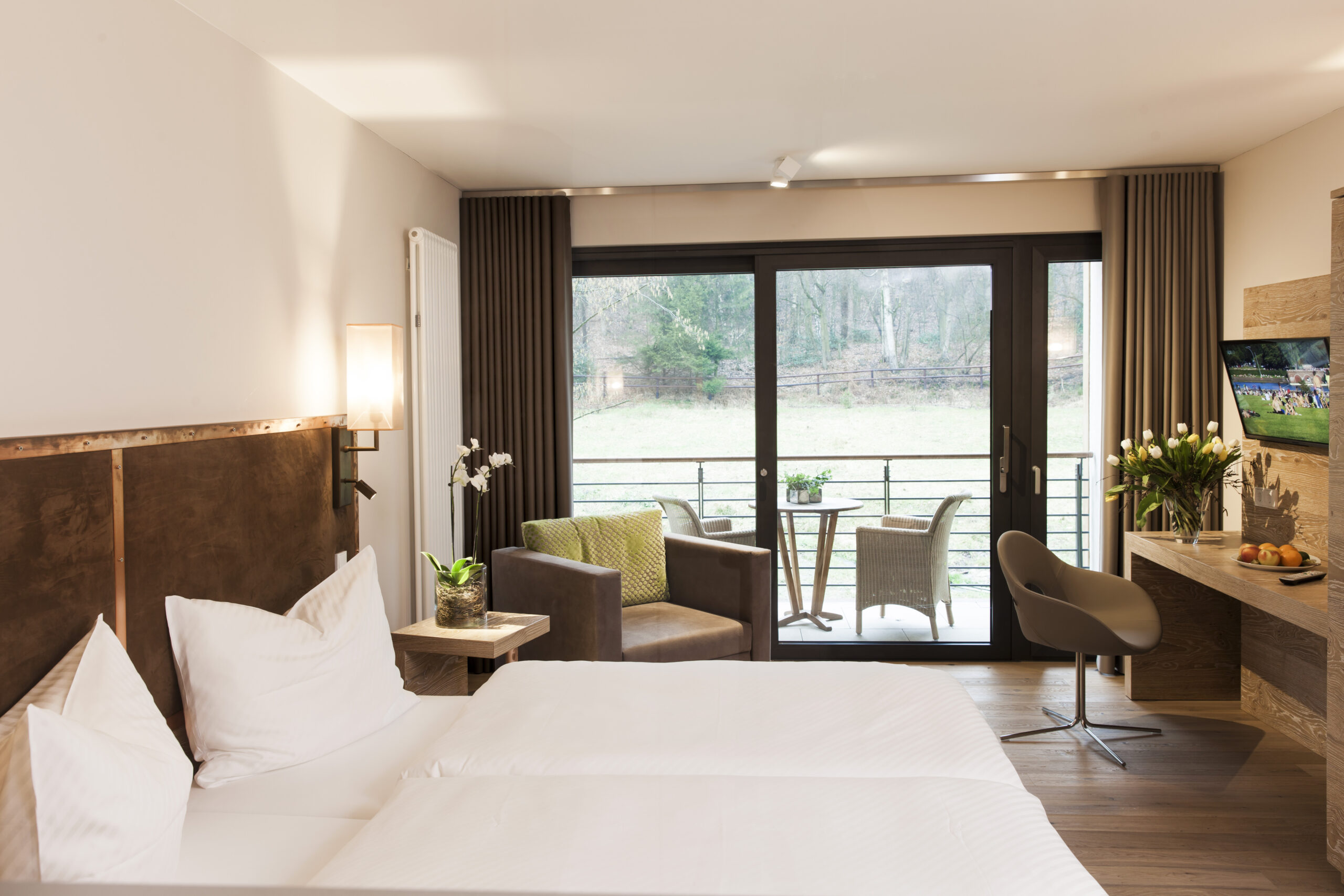Je nach Lage verfügen die Zimmer über einen Balkon oder eine Terrasse und eröffnen Ausblicke in die umliegende Natur oder den Garten. Die Bäder sind modern und hochwertig gestaltet. Für Gäste, die Arbeit und Erholung verbinden möchten, steht in vielen Zimmern zudem ein komfortabler Arbeitsplatz zur Verfügung.