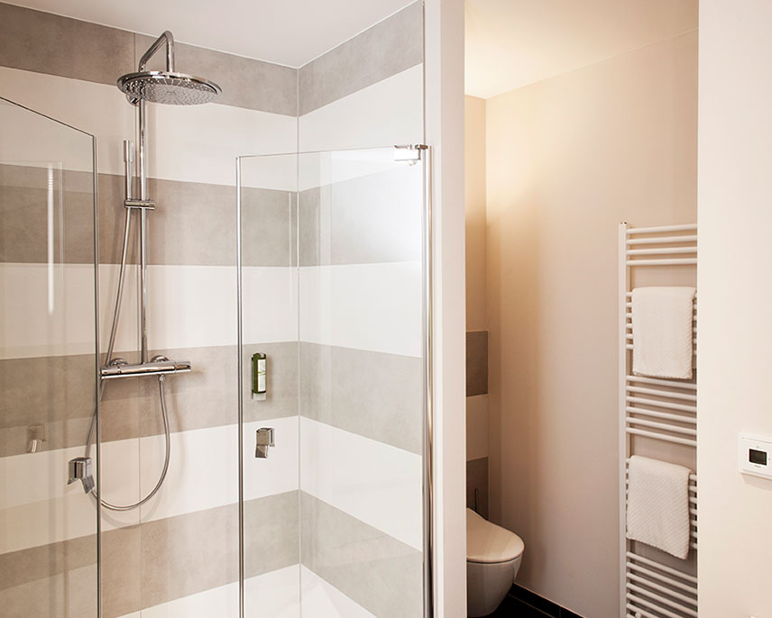 Jedes Zimmer verfügt über ein komfortables großes Doppelbett, ein individuell gestaltetes Bad mit Dusche oder Badewanne sowie – je nach Lage – einen schönen Ausblick in die Natur oder auf das Ensemble des Heiligenbergs. Die Comfort-Doppelzimmer bieten mit ca. 25–32 m² ein spürbares Plus an Raum und Komfort.