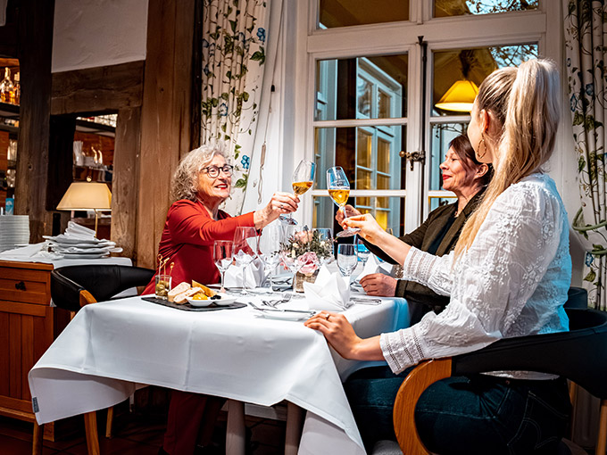 Gutes Essen in stilvoller Atmosphäre ist bei uns mehr als nur eine Mahlzeit. In unserem Restaurant im historischen Haupthaus empfangen wir unsere Gäste mit Herz und echter Leidenschaft für gutes Essen. Das Küchenteam verwöhnt Sie mit klassischer Küche, modern interpretiert und mit viel Gespür für Geschmack und Qualität. Regionalität, Saisonalität und hochwertige Produkte stehen dabei im Mittelpunkt. Mit kreativer Handschrift entstehen Menüs, die sich am besten Angebot der Region orientieren – getragen von ehrlicher Gastfreundschaft und der Freude, genussvolle Momente zu schaffen.